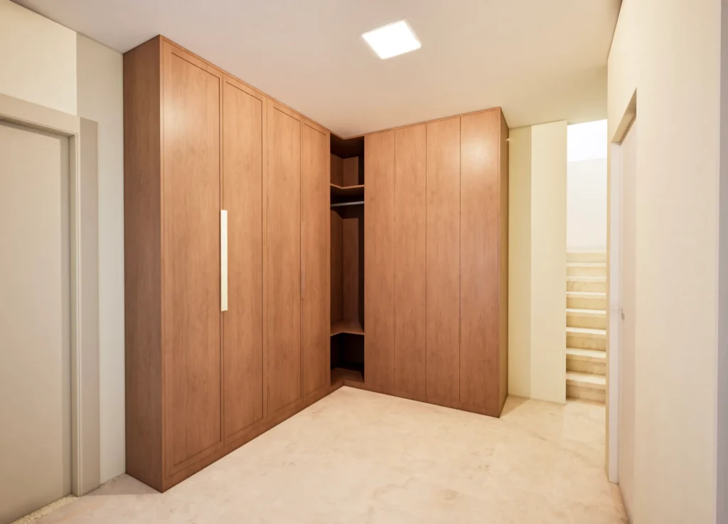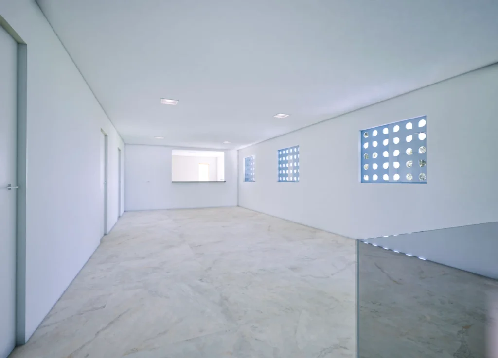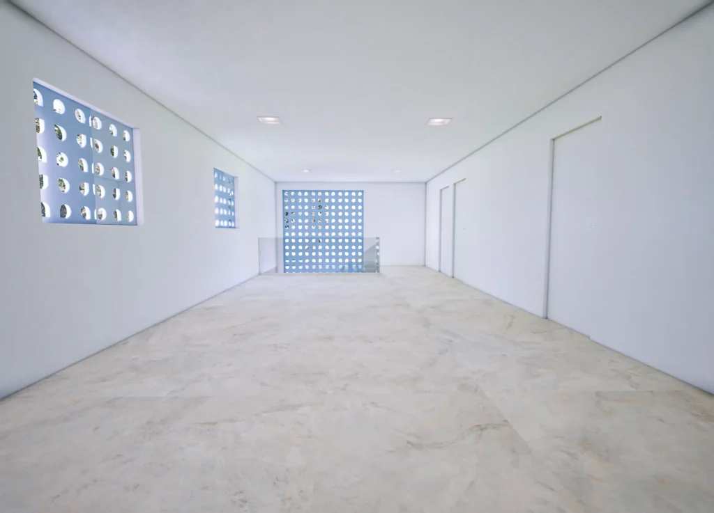 O primeiro andar com a salas pastorais e o pé-direito mais baixo trouxeram um convite: criar um espaço de oração que fosse leve, acolhedor e digno, mesmo com as limitações estruturais.