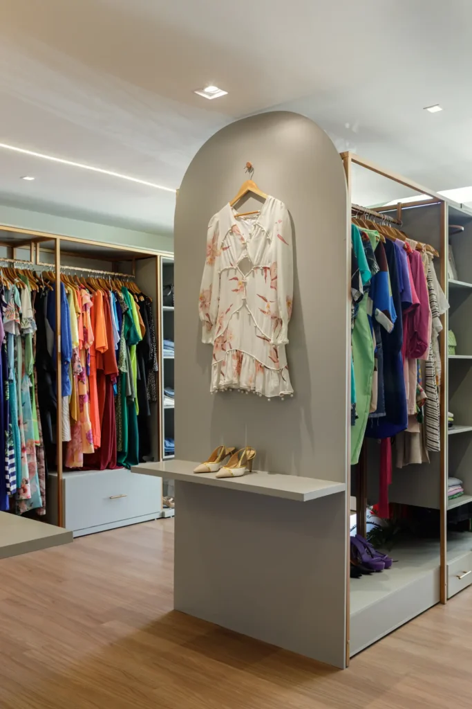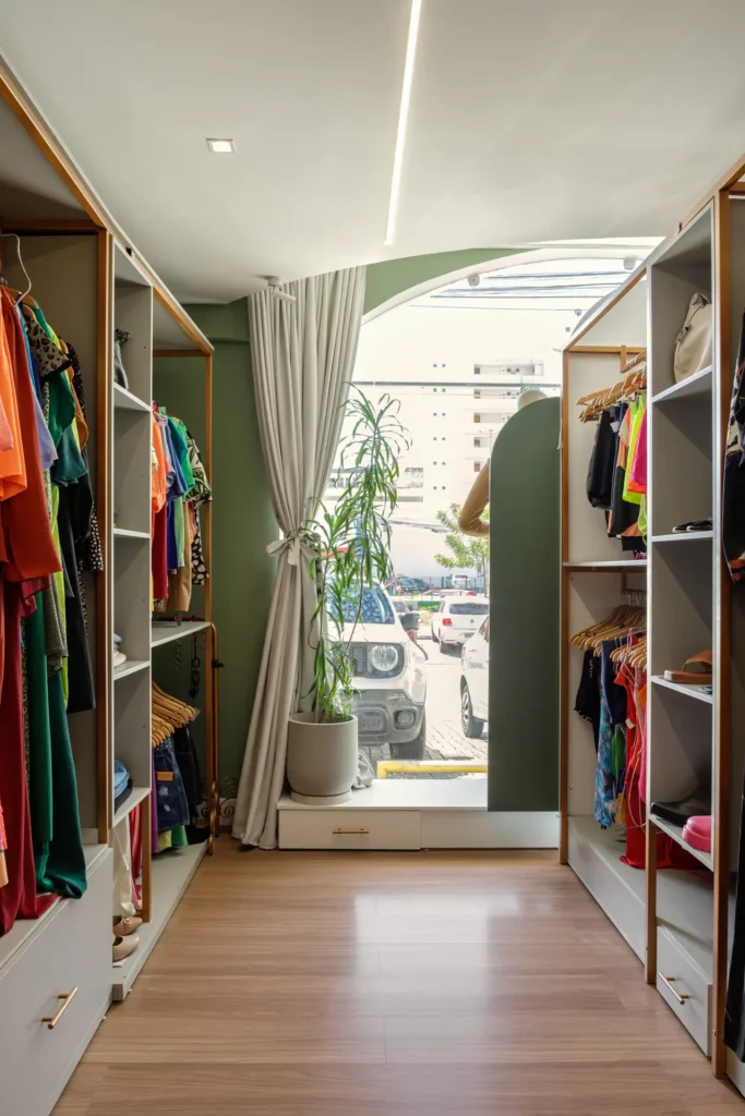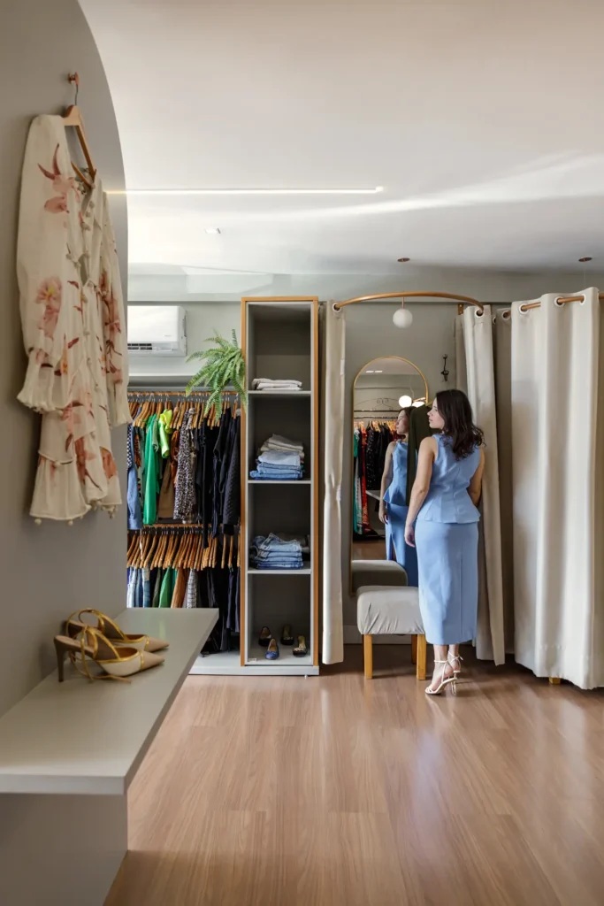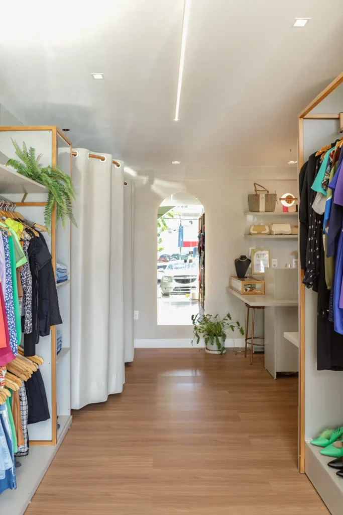 O Vila Verde Brechó nasceu com a proposta de unir moda, sustentabilidade e experiência acolhedora em um único espaço. O projeto arquitetônico valoriza a iluminação natural, a circulação fluida e o design funcional, com mobiliário sob medida e paleta de cores suaves que transmitem leveza e sofisticação. Espelhos em arco, provadores bem iluminados e detalhes em madeira aquecem o ambiente, enquanto a organização estratégica das araras e nichos convida o cliente a explorar cada peça com calma e conforto. O resultado é um brechó contemporâneo, charmoso e pensado para receber bem.